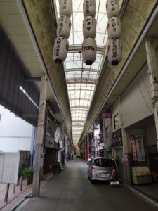 Do této střechou zakryté uličky (na fotografii výše) jsme se později i vrátili – to tam bylo o poznání rušněji. Ten den byla neděle, takže je logické, že všechny obchody, které jsme minuli, měly zavřeno.