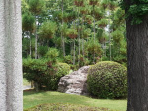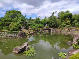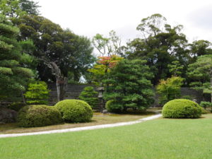 Venku, okolo paláce, se nachází rozlehlá zahrada obsahující obrovské jezero, ozdobné kameny a pěstěné borovice. Jedná se o jednu z tradičních japonských zahrad, které byly po staletí brány jako umělecká díla a o které bylo velmi pečováno.