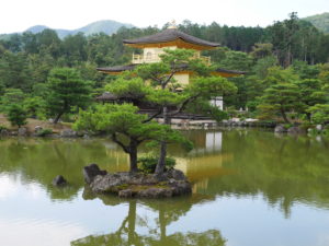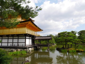 Kinkakuji* původně sloužil jako důchodová vila shoguna Ashikagy Yoshimitsu, na jehož přání se po jeho smrti v roce 1408 stal buddhistickým chrámem.